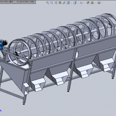 分级筛选机 果蔬加工机械:滚筒分级机3D模型,SolidWorks 2008源文件 可编辑