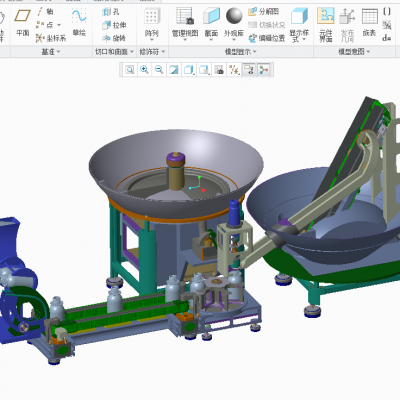 一款玻璃瓶/医药瓶全自动灌装生产线PROE5.0设计prt/asm文件提供 无参数 但可编辑,模型有些大,要求电脑配置高些。医疗瓶灌装线,非常不错,欢迎下载!高大上的机器,对于相关行业的设计师有帮助,欢迎下载。