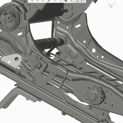这款汽车座椅骨架、结构框架的设计,非常棒,很好的把汽车座椅的内部结构体现的淋漓尽致,汽车座椅骨架主要特点是边框采用异型槽钢结构,而弹性件由拉簧和钢丝格网组成,拉簧接于格网与边框之间。本实用新型具有重量轻、强度高、弹性好、外形美观优点,其结构更适合于人体工程,舒适性很好。汽车座椅骨架 Proe5.0设计prt文件分享,总装配图为frame_of_car_seat.asm.1 ,欢迎下载学习。