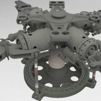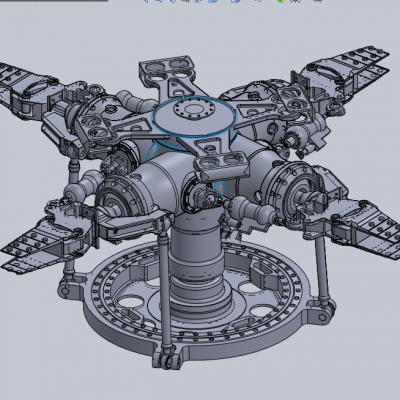 直升机旋翼头,UH-60黑鹰直升机的主旋翼头组件SW2014设计3D模型 这是一款黑鹰直升机主旋翼模型,根据实物模型测绘,可应用于实战,结构比较复杂,模型提供solidworks文件,欢迎机械爱好者下载,UH-60黑鹰直升机由美国西科斯基飞行器公司在上世纪七十年代为美国陆军设计生产的四旋翼、双发动机、中型通用直升机。UH-60“黑鹰‘衍生出了许多型号和版本,彰显了其近乎完美的通用性。4片桨叶的铰接式旋翼,桨叶可人工折叠。4片桨叶尾桨,位于尾斜梁右侧,尾斜梁可向右折叠。不可收放后三点式起落架。驾驶舱内2名驾驶员,主舱可裁11名全副武装的士兵。