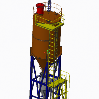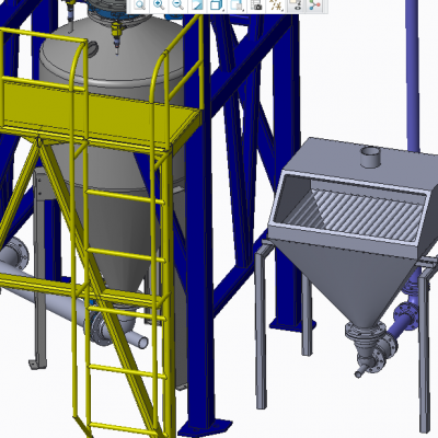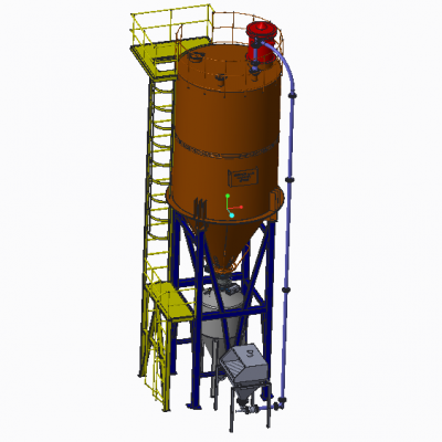 粉体料仓输送设备PROE5.0设计,zpt.asm是装配图。料仓输送机,粉体输送系统,真空粉体输送系统是通过真空吸气达到粉体输送的目的,再结合过滤、反吹、放料、阀体控制等综合因素集成的系统。系统主要应用于输送粉状料、粒状料、粉粒料混合料等物料;系统能自动地将各种物料输送到包装机、注塑机、粉碎机等设备的料斗中,也能直接把混合的物料输送到混合机和各类混合反应罐中,解决了加料时粉尘问题,减轻了工人劳动强度,是粉体输送的首选系统。