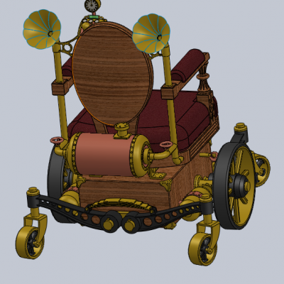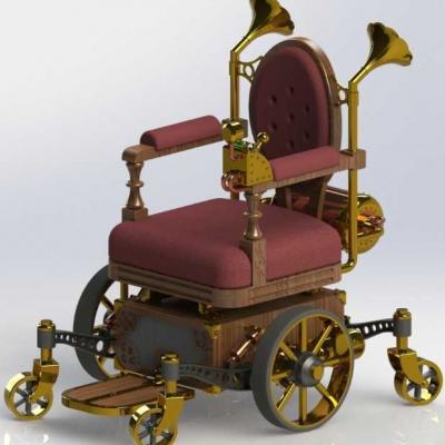 蒸汽朋克机械轮椅3D模型 SW2012设计,有参数可编辑源文件,蒸汽朋克风格轮椅是不错的设计理念,人性化,欢迎参考。