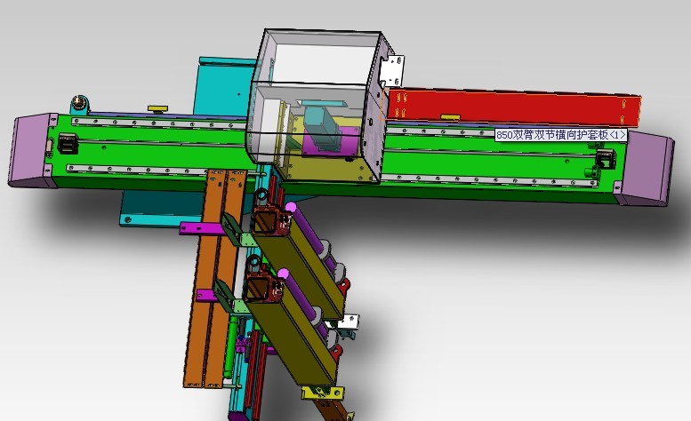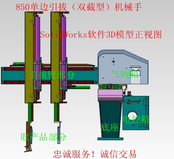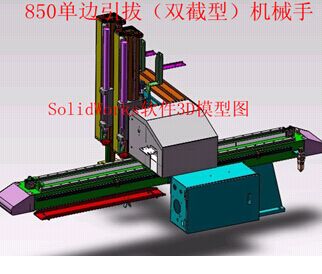 模走式机械手结构,天行850机械手结构图,内含整套3D图和2D传动方式是伺服电和皮带高速运动,能够快速的从模内把产品取出,一般塑胶产品比较多如:手机壳,杯子,盒子,等设备改造空间很大,结构通用内部结皮带滑快等可以用在其它机上都是很方便的 Solidworks2012设计 可进行编辑,含参数。