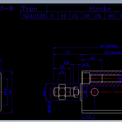 亚德客SDA气缸汽缸2D图,CAD图纸含尺寸。有外牙型+内牙现气缸