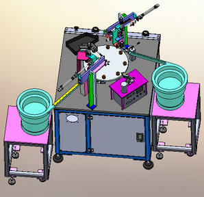耳机组装机点胶机3D模型,这是一款非标自动化设备,主要功能为耳机的组装点胶等,采用转转盘式设计。零件齐全欢迎下载参考。