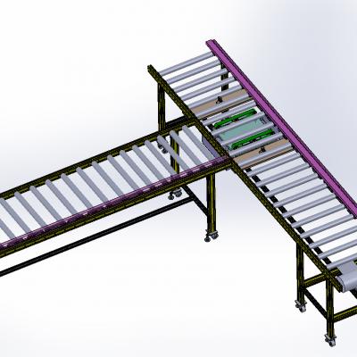 滚筒线体(带阻挡机构和移载机构)3D模型这是滚筒流水线,阻挡机构及移载机构,SOLIDWORKS设计,每个零件都有特征,该运动的地方均可模拟动动(约束该柔性的地方全为柔性)。结构清楚,零件齐全,尺寸准确,让你可非常直观清楚的看到,阻挡缸及顶升定位的模拟动作,移载传动轮作成两端悬挂是为了方更换皮带,更换时只需将最上方的同排三个轮子的外侧支撑片卸掉即可。是你做滚筒线时的理想参照。欢迎下载。