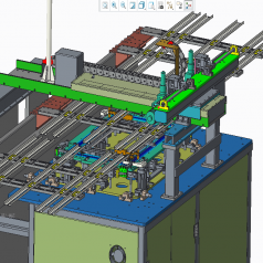 钣金件激光焊接机3D模型,这是一款非标设备,钣金件激光焊接机,双激光头焊接,由上料机械手将料片放于设备的治具上后,治具自行定位压紧,然后双激光头在XY伺服模组的移动下,烧焊相应的焊缝,