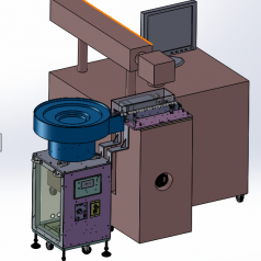 打标机自动上料系统,这是一款非标自动化设备,是用震盘将塑胶件有序排列完成后,自动打标出料。源文 件共享,欢迎参考