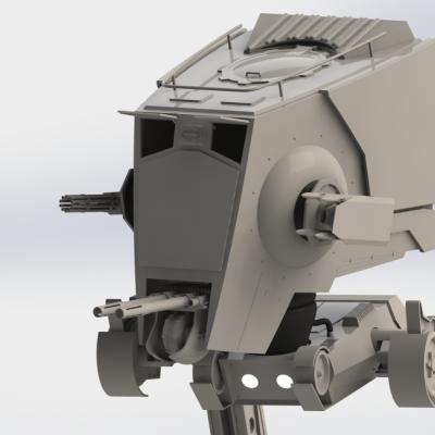 全地形侦察运输V2 ,这种四条腿的突击步行机采用蹲姿,支撑着其背部高射炮塔的巨大重量。其多弹种高射炮舱能用致命的炮弹在空中划出一道道尾迹,依靠不同的弹种击穿星际战斗机的装甲或毁坏精密的航空电子设备。这种步行机还携带有复杂的电子对抗设备,能干扰导弹的制导系统,降低被来袭导弹击中的风险。