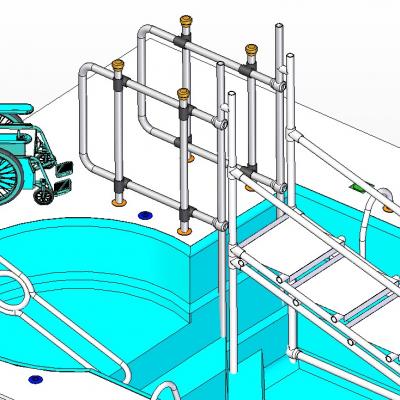 残疾人游泳池扶梯3D模型 STP文件+CREO3.0文件