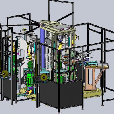 大型复杂六工位测试机3D模型 ,此设备是SW2011设计,该设备结构非常复杂,共596个零件和一个STP格式文件,10个装配体。该设备是一款国外经典设备,为汽车扭矩零件泄漏检测专用。设备共6分度转塔式结构,采用高精度高扭矩的分割器实现分度,自动入料机构,机械抓取零件放置转盘工位定位。进行零件泄漏检测。设备运动大量机构。设计合理。