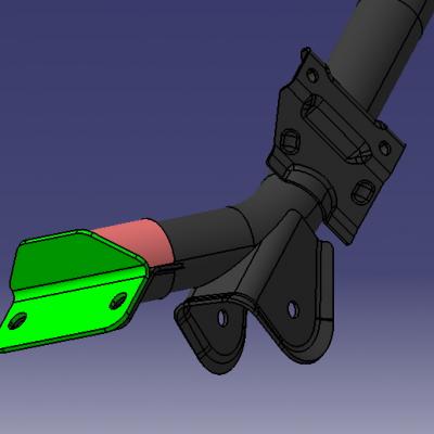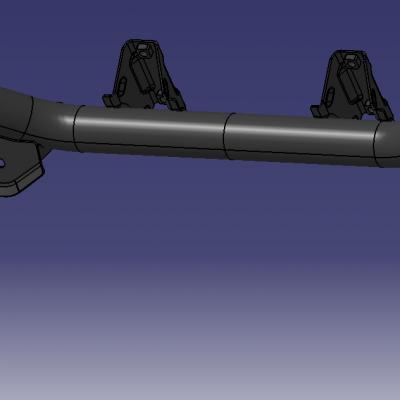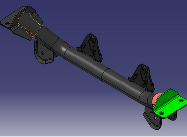 面包车及皮卡用的发动机支承梁,又称为元宝梁,改进后的元宝梁,所有支架及端头连接板均采用冲压一次成型.