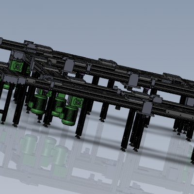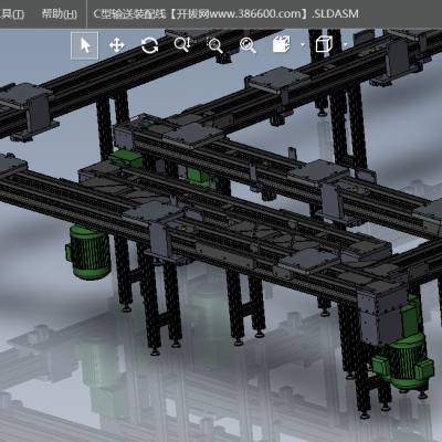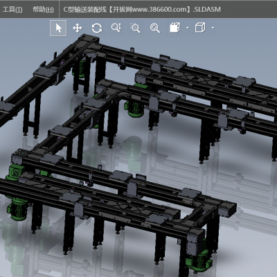 C型输送装配线SW设计3D模型sldasm﹑sldprt文件提供,这是典型的同步装配线的输送形式,同步装配要求装配线上所有工位的装配节拍要尽量一致,输送线的输送节拍为线上最慢工位的装配节拍,即只有全线所有工位的装配作业都完成后,输送线才能进行输送。便于实现装配线的同步输送,同时装配线的所有工位间距都要按等距离布置,这样就可以实现步进式输送。