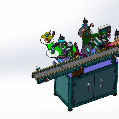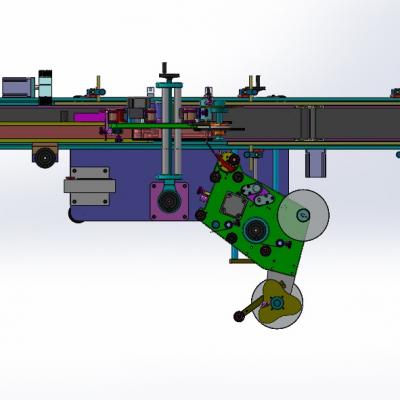 纸盒九十度拐角双面贴标机 这套设备是用于纸盒的九十度直角贴标,其实相似的产品亦可使用,还加了侧面贴标,直标压标方式采用电机直接转动毛刷进行,侧面压标则用海绵,考虑到直角压标时,毛刷击打纸盒可能导致纸盒跳动,所以在贴标段上方增加了压带。纸盒90度直角双面贴标机3D模型Sldprt/Sldasm/SLDDRW源文件分享,欢迎下载。