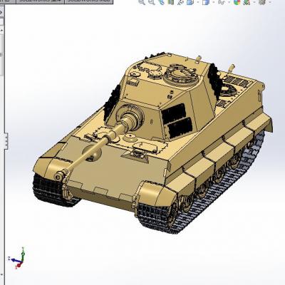 虎王坦克3D模型:Solidworks 2012设计, 零件分得很细,个人觉得没有必要这么细。同样没有内部结构,只有外观,想做虎式坦克的朋友值得下载。
