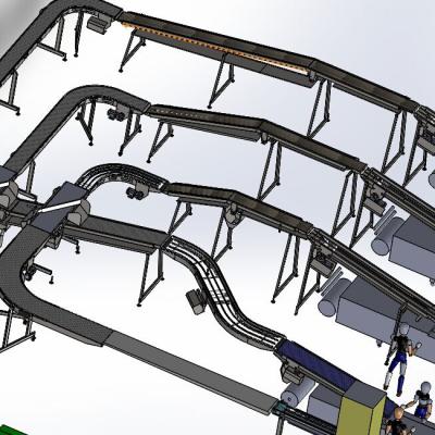 鲑鱼加工输送机大型流水线3D模型 SW2015设计 提供sldprt文件,欢迎下载。从鲑鱼的加工、打包到封装,再到输送给装配,最后入库储存等待运输,整个流程输送机的作用非常关键,对于运输行业的从业人员非常值得借鉴。