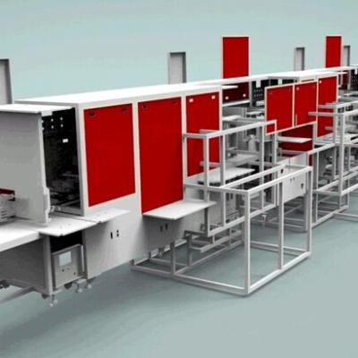 手机utmc自动加工生产线线体总个的加工作业流程以及工位主要由以下:输送进料位,检测到位,自动取放料搬运机械手,激光切割加工成型位,冲压裁切,自动喷助焊剂,180度旋转自动粘锡工位,输送带90度转换位,点胶位,CCD相机视觉检测位,自动输送位,搬运下料机械手,出料输送带。这些每个工位可以随时更换位置和相互更结构来达到自己想要的效果,有些客户的需求不同然而加工的工位也有所不同,从而需要从新设计或者更改结构,那么有了这条线之后只需做小小的改动就可以让其变另外一条自动生产线,或者说变成你想要的自动化流水线,为什么这么说呢?因为不管是什么样的生产线,它唯一可以不变的就是线体的结构和搬运机械手,通常只是一些加工的工位不一样,有些是需要打螺丝,点胶,贴标或者其它的,所以这条线是非常好的,学习和借鉴改造的图纸希望有需要的朋友可以下载,从中能够得到设计灵感,巧妙的应用到设计上去,弥补自己的设计不足。