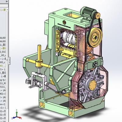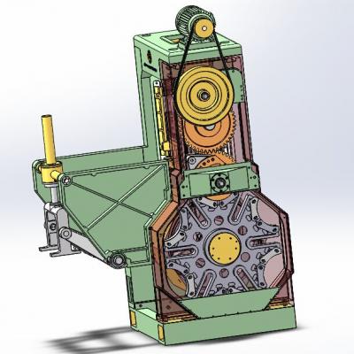 该设备是一款结构非常经典的自动化非标设备,采用多级齿轮传动和凸轮联动机构,非常的有参考价值,是一款纯机械式的自动化设备,瓷砖制作机设备可以把花纹刻录在瓷砖上,非常具有实用性,是常用的一种加工设备,指导学习的一款好设备。