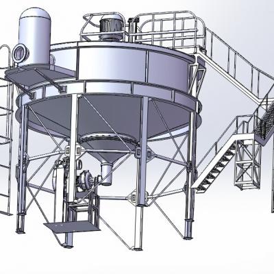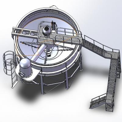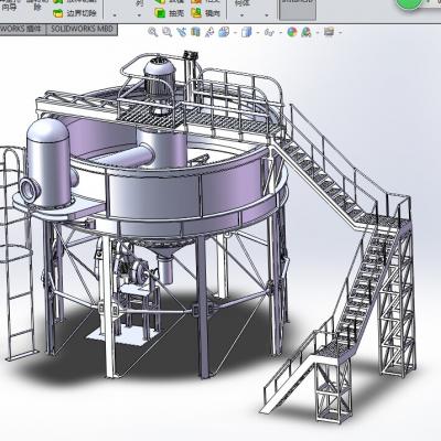 采用循环流化床技术设计的污泥浓缩池3D模型,SW设计sldprt文档提供,污泥浓缩池采用流式圆形重力连续式污泥浓缩池,用带栅条的刮泥机刮泥,采用静压排泥,剩余污泥泵房将污泥送至浓缩池。