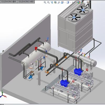 轮机舱制冷设备3D模型 SW设计sldasm﹑sldprt文件提供。该制冷设备设计的相当详细,结构合理,欢迎下载。冷水机 装载船舶动力装置的制冷装置,有效促进机舱的降温。