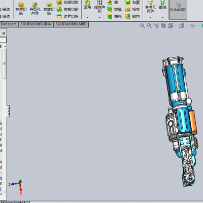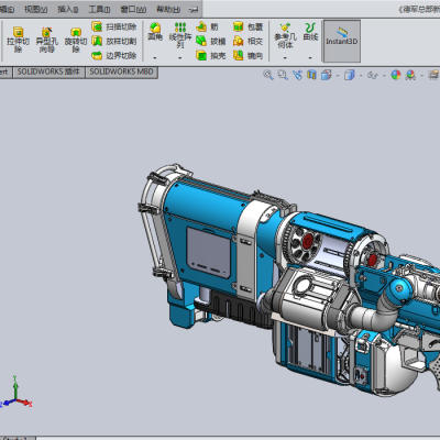 《德军总部新秩序》游戏武器-激光切割器3D模型 采用Solidworks 2014设计源文件提供,欢迎下载。该激光武器在游戏中完虐纳粹机器人,一部非常前卫的武器。