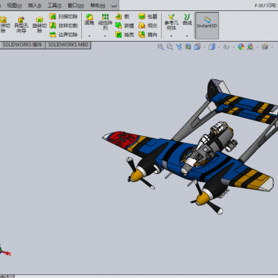 P-38J“闪电”战斗机3D模型 Solidworks 2014设计源文件提供。P-38“闪电”战斗机,是美国洛克·希德公司研制的第一种军用飞机,由传奇人物凯利·约翰逊主持设计。