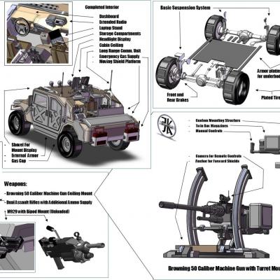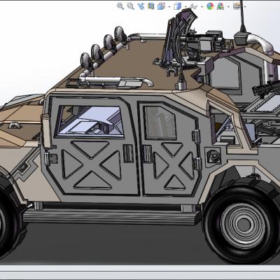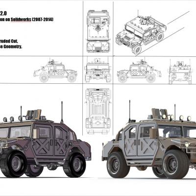 Hummer军事指挥吉普车模型3D图纸 solidworks2014设计的悍马汽车3D模型提供。战争机器悍马车这是一款游戏中的车种,非常彪悍的可以通过层层障碍的悍马车。