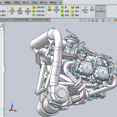 Rotax914发动机 是一款航空发动机,发动机配螺旋浆减速齿轮箱、排气系统、发动机安装架、过载离合器、真空泵、液压螺旋浆变距调节器、 外置发电机。该飞机发动机3D模型使用Solidworks 2014设计sldprt源文件提供,欢迎下载