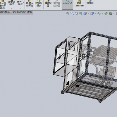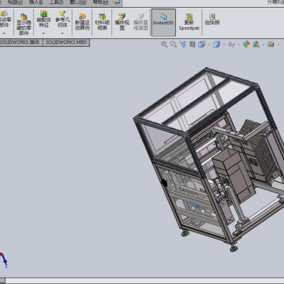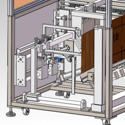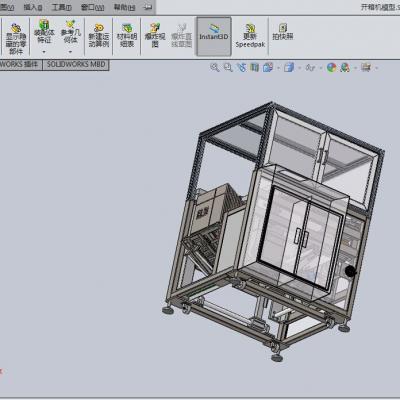 自动开箱机,纸箱板打开,箱子底部按一定程序折合,并用胶带密封后输送给装箱机的专用设备。2015SW设计设计源文件分享。