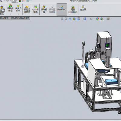 电容外壳密封检测设备3D模型,设备通过X光进行对产品的探测,检测是否有缺陷,操作都是在密闭的空间自动进行。电容外壳密封性检测机包括总装图、部件图、零件图,建议使用Solidworks 2014及以上版本打开。该设备手动放如电容外壳然后自动压紧定位,自动进给、打孔,然后转台旋转,机械手拾取电容外壳放入检测桶内,打压自动完成,机械手拾取外壳放入工件台上。