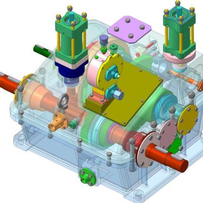 变速器3D模型 内部结构清晰 采用SW2014设计源文件提供。它采用齿轮传动,具有若干个定值传动比。按所用轮系型式不同,有轴线固定式变速器(普通变速器)和轴线旋转式变速器(行星齿轮变速器)两种。