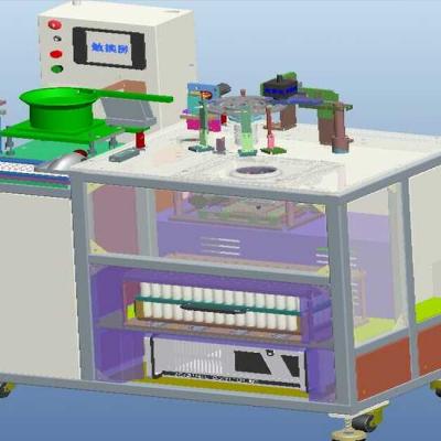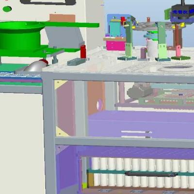 该设备含完整的3D装配图、零件图有大小零件有250多个,设备为测试分选分光主要工作原理是:对SMD零件的功能测试,它是由振动盘供料出来后,一个高速的取放料机械把要测试的产品快速的吸取到旋转盘上进行相对的功能测,一般可以做,NG分选测试,产品的极性测,电感、电阻的测试等,如果是LED可做分光、分选测试等等。