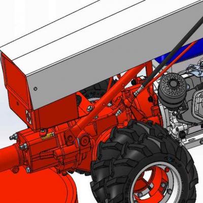 搭载本田GX390发动机的手扶拖拉机割草机由刀盘、发动机、行走轮、行走机构、刀片、手扶拖拉机及控制部分组成。刀盘装在行走轮上,刀盘上装有发动机,发动机的输出轴上装有刀片,刀片利用发动机的高速旋转在速度方面提高很多,节省了除草工人的作业时间,减少了大量的人力资源。割草机又称草坪机,由刀盘、发动机、行走轮、行走机构、刀片、扶手及控制部分组成。由平行四杆升降装置,机架、左右单翼锄草装置,整机调偏装置,梳齿旋转圆锥齿轮增速传动机构和梳齿仿型调深装置组成;效率比人工锄草提高8至10倍,伤苗率低,除苗清洁率高。整体结构设计的非常不错,可以下载学习设计思路的运用.