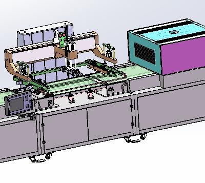 全自动丝网印刷机3D模型,全自动丝网印刷机,最大印刷面积800*600,该设备的主要特点为360°停回转滚筒,超高印刷精度;LCD人机对话界面;4-9mm可调整网路(网版和滚筒网距);拉出式网版框架,更易于输纸状态的检查和网版的清洗; PLC控制集中润滑加油器,确保传送部分润滑,减少关键零件部易损坏并延长使用寿命;光电全程监控印刷过程中的空张及歪张状态,有效减少报废率。工艺流程:原材料---自动送料(双面除尘、撕保护膜、除静电)---自动印刷(打定位孔、品检灯)---自动烘烤后并收卷(自动上光、护膜,贴合胶带、离型纸等)---后续工艺可实现自动冲切---成品。 全自动只需1-2人操作,一套全自动只需15-20平方米。附带全自动丝网印刷机设计的方案书。