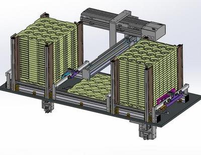 该模型为叶片入料机构,结构复杂主要用于叶片零件的上机转运等,包括底板、工作支架、工作平台,等操作台,格式为零部件装配文件,欢迎大家多多学习研究。XY电缸拾取物料,两行程气缸将PVC包装的物料层层取下,这才精典之处
