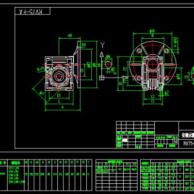 这是RV75-FA型蜗轮蜗杆减速机,内部有三维模型、二维图纸和技术参数。