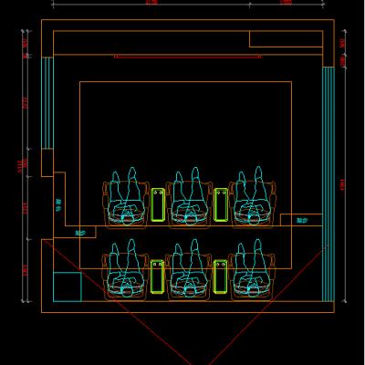 VIP厅近40平,6人座,5.7MX5.7M。CAD图包括平面图1张,立面图4张。另包括3D模型一个。可用作课程设计作业参考内容。