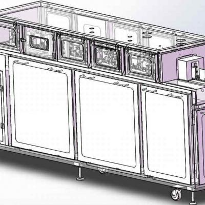 一套完整电子板卡清洗设备3D图,可以清洗手机板卡,电脑板卡,及去毛刺等多功能与一体的设备,该设备包含低压清洗 高压清洗,和去毛刺清洗,为一款通过式清洗设备!