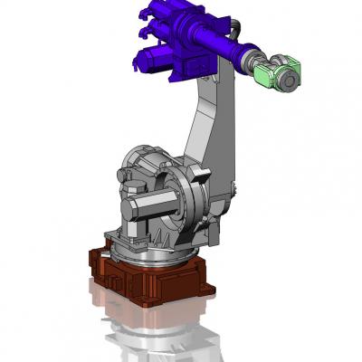 该模型由5个伺服电机。底座,机械手臂,机械手头,固定螺钉,杆机构等组成。其中有3节可活动的有伺服电机控制的关节。实现了空间360度任意旋转,机械手头可以夹持刀具测头等装置。欢迎大家下载。