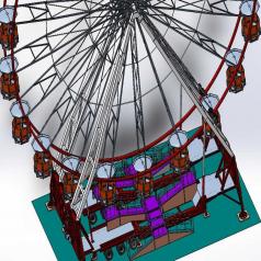 摩天轮是一种大型转轮状的机械建筑设施,上面挂在轮边缘的是供乘客乘搭的座舱。乘客坐在摩天轮慢慢的往上转,可以从高处俯瞰四周景色。最常见的摩天轮存在的场合是游乐园(或主题公园)与园游会,作为一种游乐场机动游戏,与云霄飞车、旋转木马合称是“乐园三宝”。但摩天轮也经常单独存在于其他的场合,通常作为活动的观景台使用。