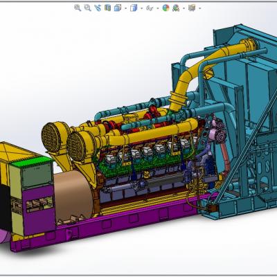 巨型柴油发电机3D模型,SolidWorks设计,是一套相当复杂的柴油发电机,除了SW源文件提供,还有STP文档。