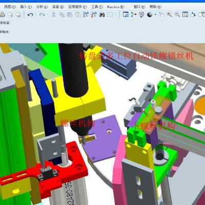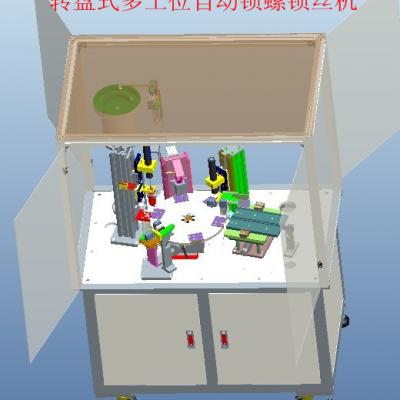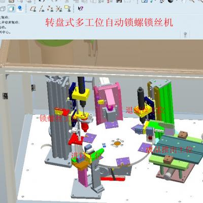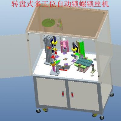 转盘式多工位自动锁螺丝机3D模型,这是一套原创的PROE5.0画的自动锁螺丝机,主要是功能是通过转盘的形式来把需要锁螺丝的零件进行工位式的送料,这套完整套的图包括有工程图CAD挡一整套完整的也在内,像这类非标的锁螺丝机是比较少的,今天传上来分享给大家,也希望能得到大家的支持谢谢