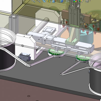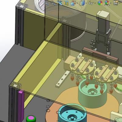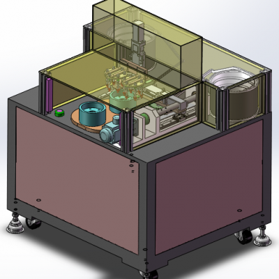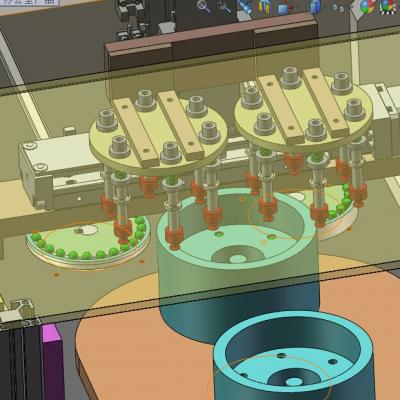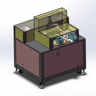 轴承钢珠、波珠自动组装机是一款自动组装钢珠和波珠设备 3D模型SW设计源文件分享,这是用SolidWorks 2012所有设计的一套原创图纸,钢珠和波珠是组装在轴承里面的,中间有两个治具座是用来人工放料的,后面2个振动盘分别是用来供料,供应钢柱和波珠两种产品,同时在组装时也是有2个取料头吸嘴分别用来吸取两种不同的产品,设备外面都加了护罩设计的也不错,图纸完整供大家学习。