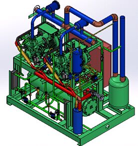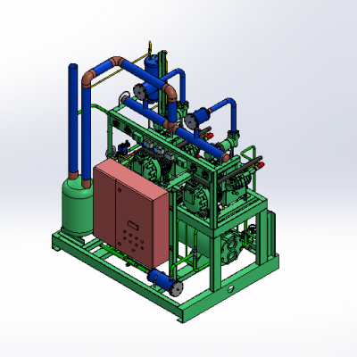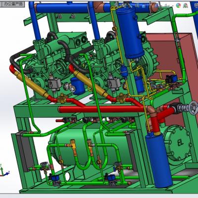 一个冷冻室的冷凝系统模型;模型结构上主要是由两大部分组成,分别是空气压缩机部分和水冷却系统;通过这两大部分的组合工作就基本上能够给整个系统提供冷凝效果;当然模型的各部分都是绘制的相当详细的;欢迎大家下载: