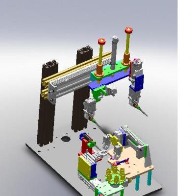 电机转子组装移栽机 一款非标自动化设备,该设备针对产品 电机内部部件,转子,转子环的装配,尺寸检测,还有移栽 这是其中一个工位 气缸控制,包括移动,翻转等动作。SW设计 提供IGS文档,欢迎下载!