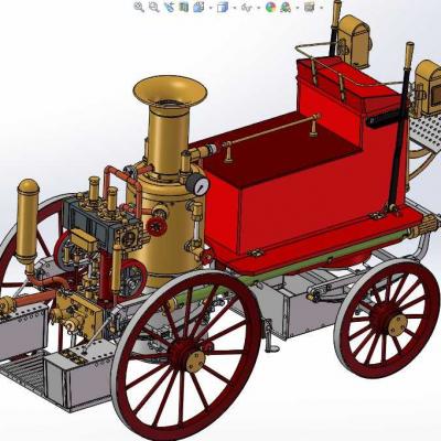 蒸汽消防车设计模型是设计了蒸汽发动机的消防车设计模型图,消防车,又称为救火车,是专门用作救火或其它紧急抢救用途的车辆。消防车按功能可分为泵车(供水车或消防洒水)、云梯车(登高救人)及其它专门车辆。消防车平常驻扎在消防局内,遇上警报时由消防员驾驶开赴现场。多数地区的消防车都是喷上鲜艳的红色(部份地区亦有鲜黄色的消防车),在车顶上设有警号及闪灯。消防车是装备各种消防器材、消防器具的各类消防车辆的总称,是目前消防部队与火灾作斗争的主要工具,是最基本的移动式消防装备。消防车的质量水平,反映出一个国家消防装备的水平,甚至体现该国整个消防事业的水平。不包含参数,但是可以编辑,可以用SOLIDWORKS2010打开。