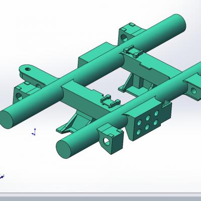 动力转向架的装配体模型,动力转向架与非动力转向架结构基本相同,只是增加了驱动系统。含独立零组件30个,主体结构完整。solidworks2013全参数化建模,并含通用stp格式文档。