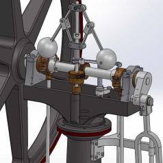 立式发动机包括: 发动机组,该发动机组成一体形成有缸膛,朝 向上下方向支承曲柄轴; 汽缸盖,该汽缸盖与汽缸盖连接面连接,该汽 缸盖连接面沿上下方向形成于发动机组(11)上; 油盘(411),该油盘(411)与油盘连接面(115)连接,该油盘连 接面沿水平方向形成于发动机组上,其特征在于: 上述油盘连接面超过朝向上述汽缸盖连接面的下方 的延长线,延伸到汽缸盖的下方