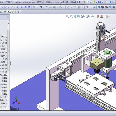 制件自动磨削机3D模型 solidworks2012设计源文件分享,可派生多种用途哟! 塑条分两工序加工完成,1:非加工面冲下夹紧,CCD定位,圆柱磨头对称露四面加工,2:非加工面冲上夹紧,CCD定位,角度磨头对顺长塑条两侧磨角。