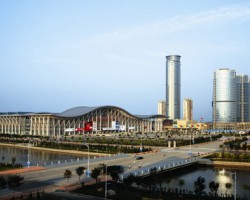 淄博国际会展中心,总建筑面积11.3万平方米,1-2层为国际展览中心,3层为陶瓷历史博物馆, 4-5层为国际会议中心,可同时容纳30